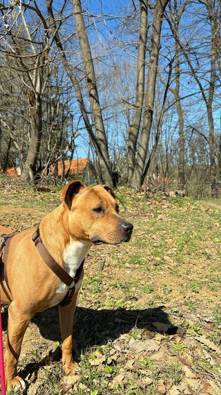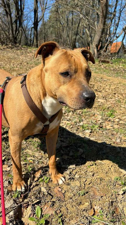 Nina ist eine wunderschöne junge Pitbull Hündin, die wir auf einer vielbefahrenen Hauptstraße in Belgrad eingefangen haben. Sie wurde irgendwo an der Kette gehalten, denn sie trug noch ihr Eisenhalsband und daran hing eine lange, schwere Eisenkette. Nina ist Fremden gegenüber misstrauisch und skeptisch, aber nach einer Weile taut sie auf und genießt die Aufmerksamkeit. Sie braucht immer einige Minuten um zu merken, dass man ihr nichts Böses tun will. Hat sie sich dann geöffnet, ist sie sehr anhänglich und lieb, genießt Streicheleinheiten und kuschelt sehr gerne. Nina kommt mit anderen Hunden gut klar, bisher hat sie kein aggressives oder dominantes Verhalten gezeigt. Für sie suchen wir dringend ein liebevolles Zuhause bei Pitbull Liebhabern und hundeerfahrenen Menschen, die ihr zeigen wie schön das Leben sein kann, ihr viel Auslauf bieten und mit ihr viele schöne und lange Spaziergange genießen. Nina wartet und hofft, dass sie von ihren Menschen entdeckt wird.